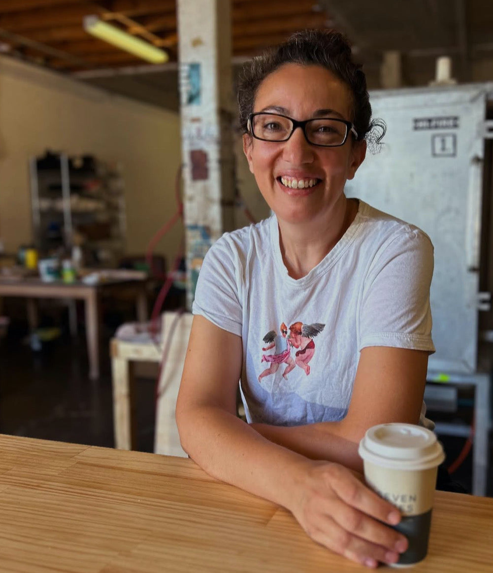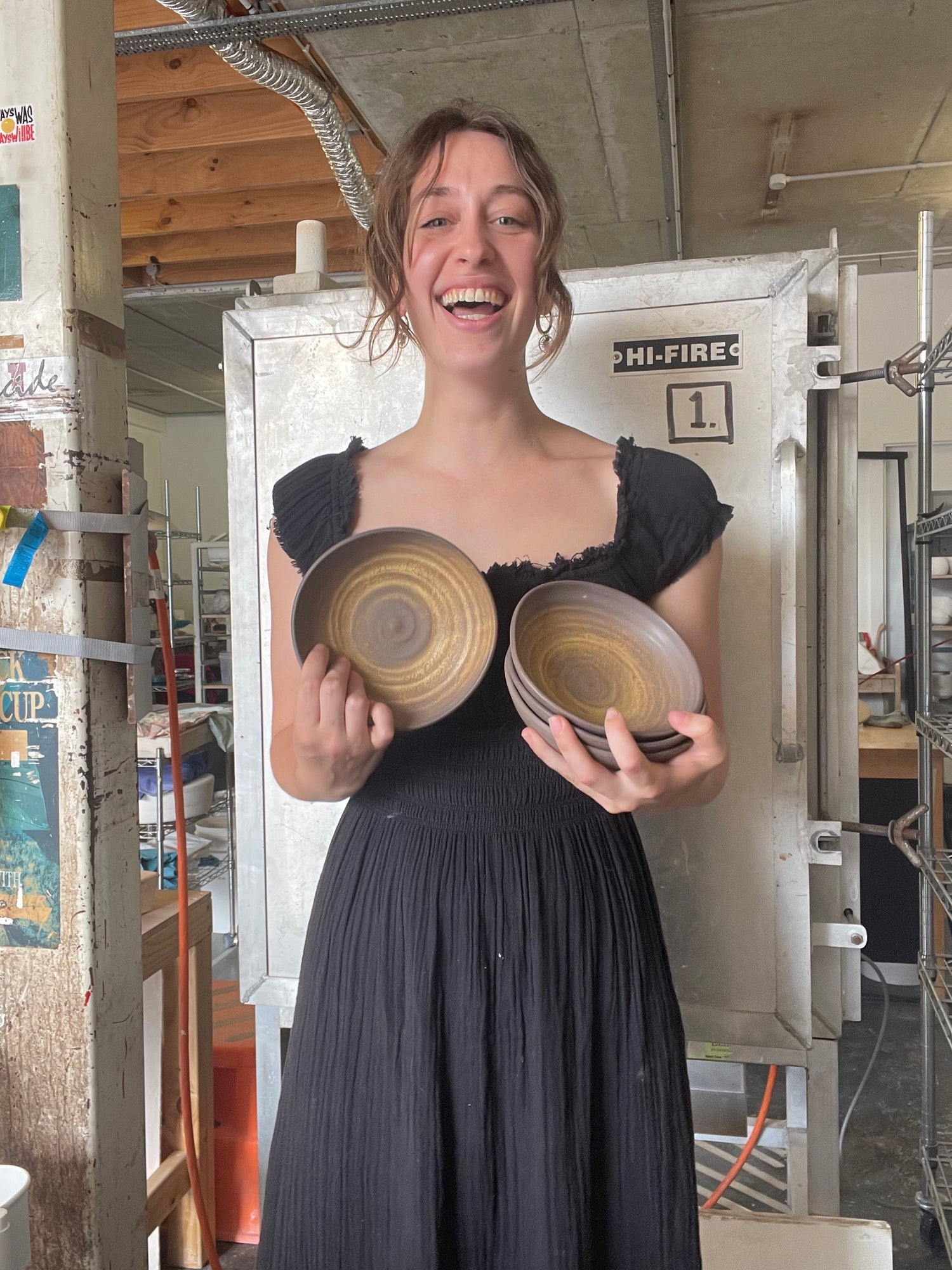 Lily’s work leans into the whimsical: mushrooms, creatures, tiny scenes, and all sorts of sculptural magic. She teaches our kids classes and is training as our studio technical assistant, learning the inner workings of kilns and glazes while helping keep the studio humming. She has the sunniest disposition in the studio and somehow manages to make everyone — from 6-year-olds to seasoned potters — feel instantly welcome.